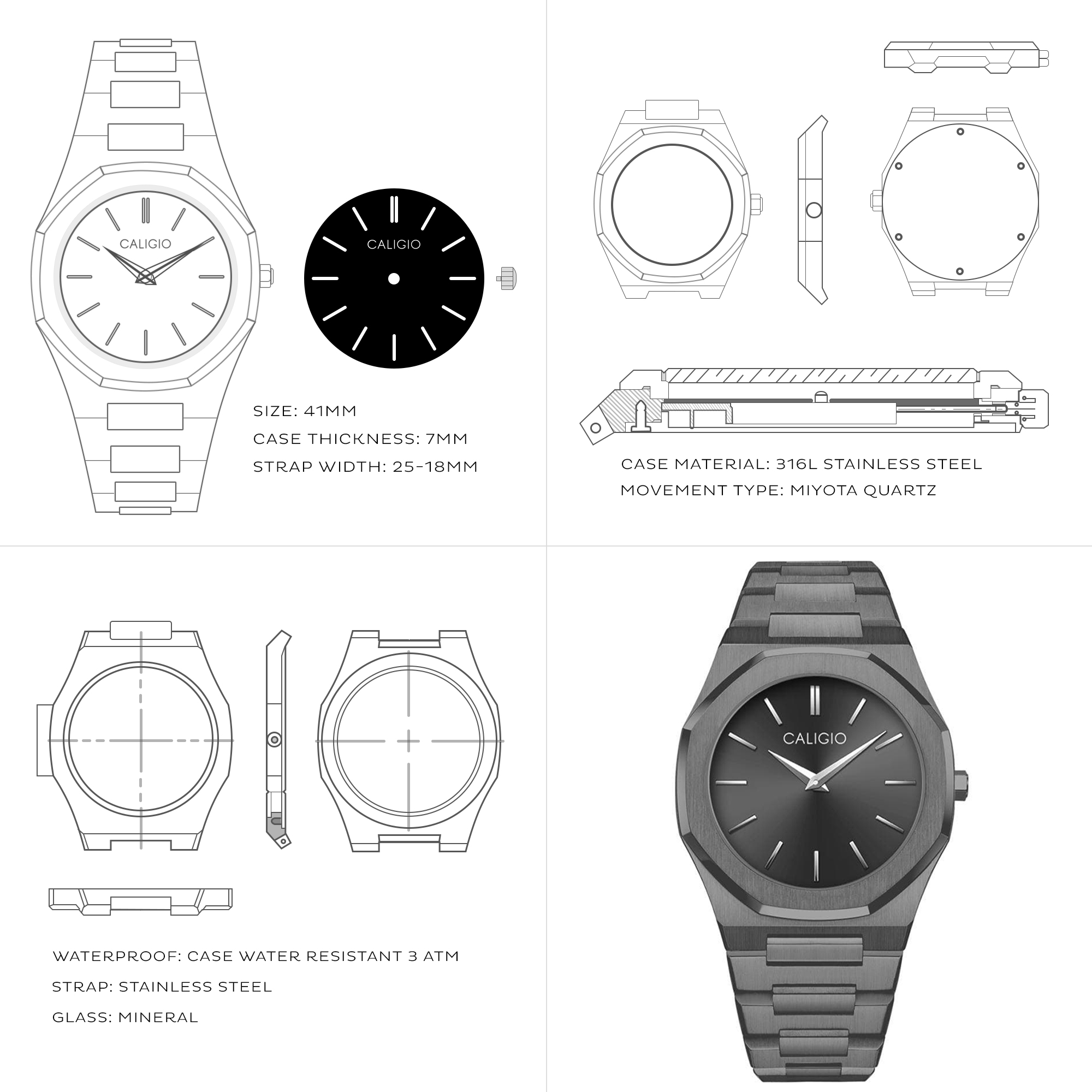 - Case Material: 316L Stainless Steel, Brushed and Polished